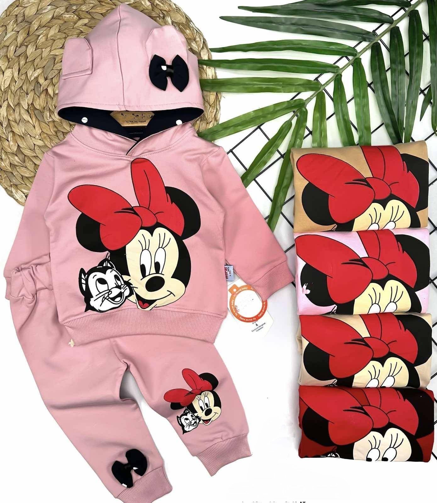 Мек и топъл ватиран екип в розов цвят с апликация на Мини Маус.