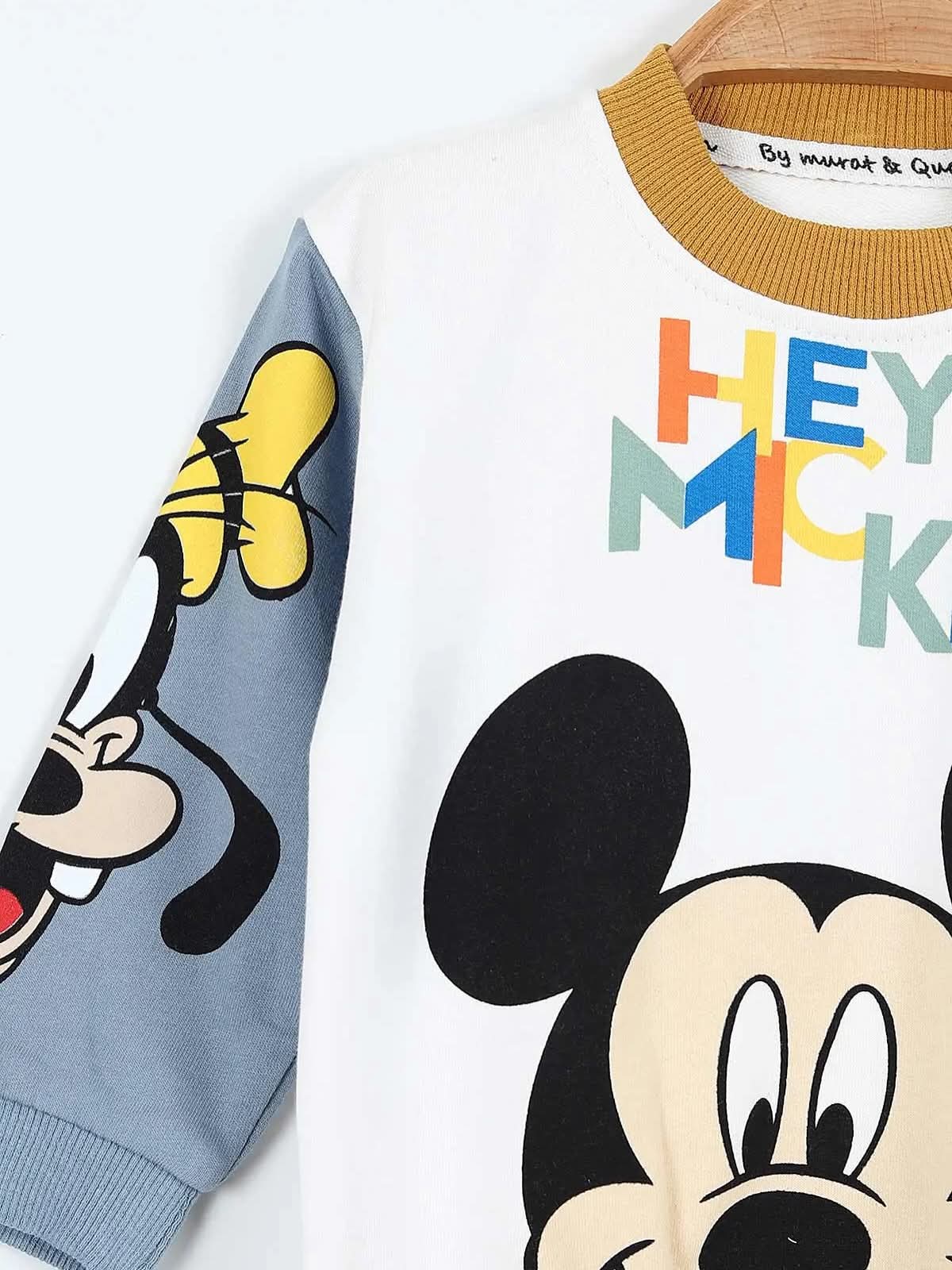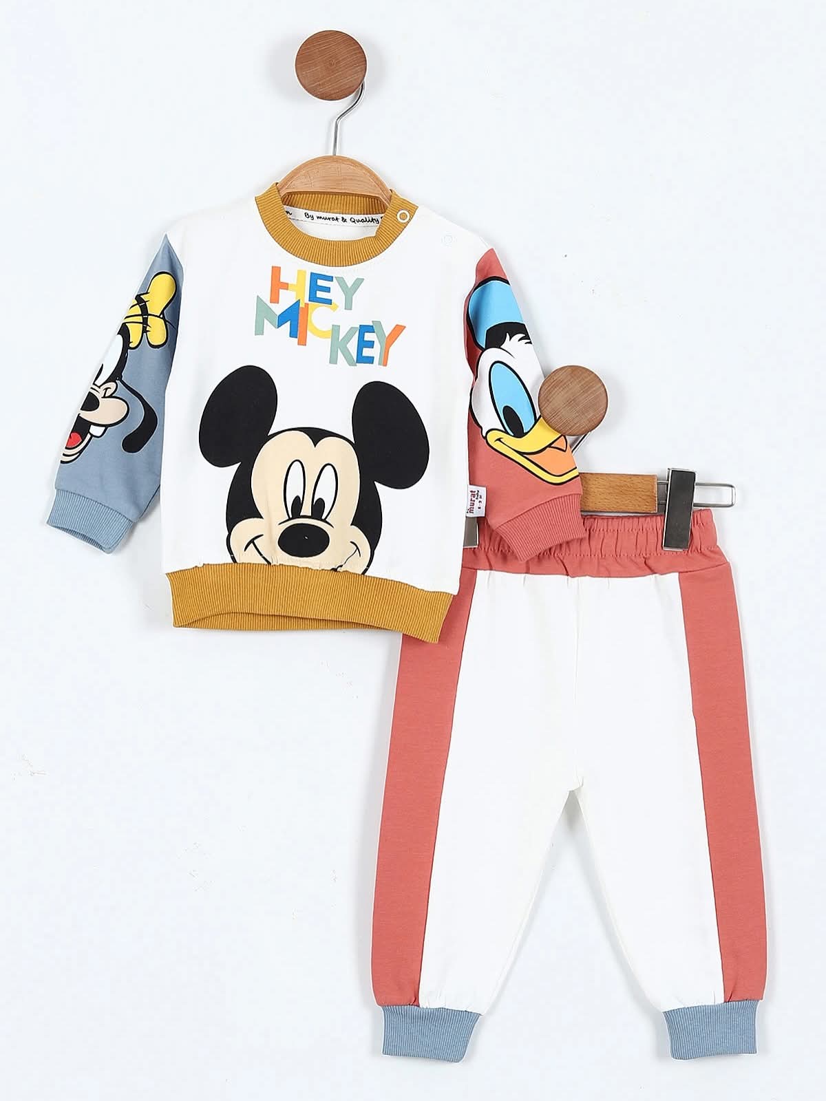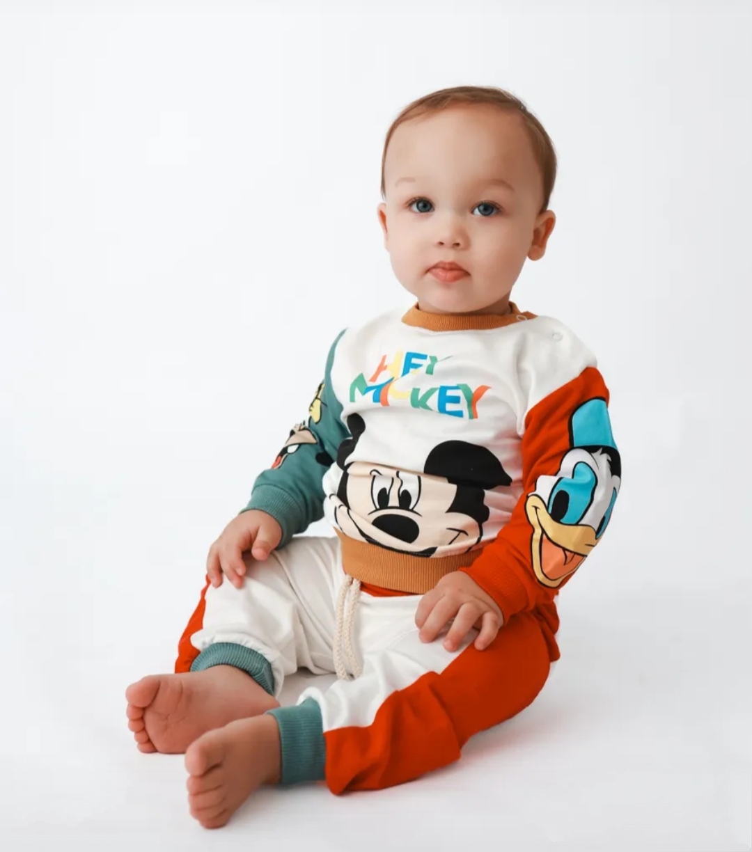 Екипчето е идеално за разходки и игри. В 2 части блузка и долничка и надпис Hey Mickey. Цветовете допълнително придават акцент