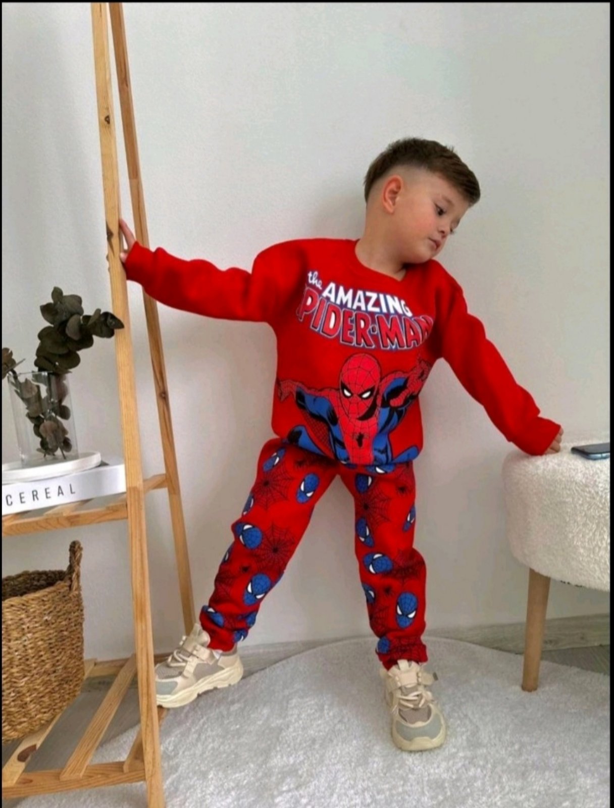 Чудесен  ватиран спортен екип за малките любители на детски дрехи със супергерои. Детският екип е с принтове Spiderman. Подходящ както за спортуване, така и за детската градина и училище.