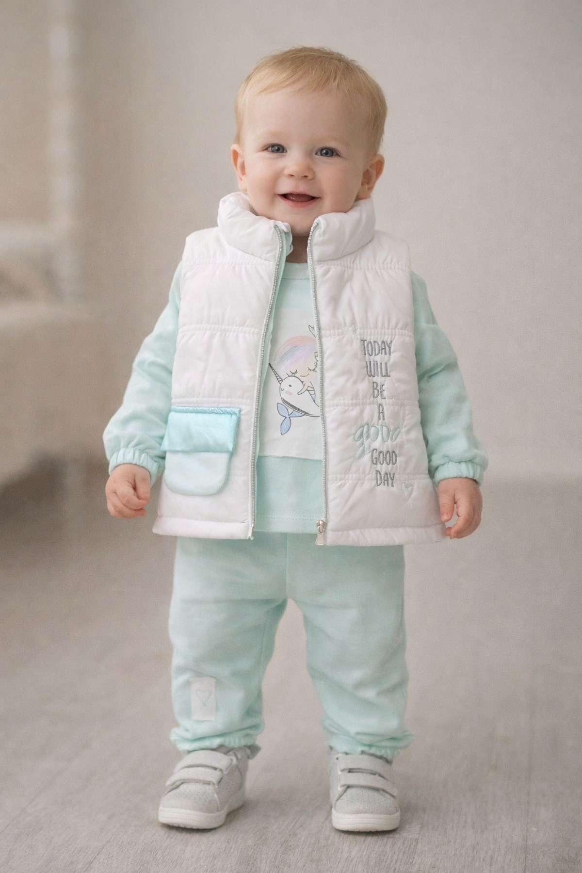 Екип с грейка от 3 части в тюркоазен цвят
