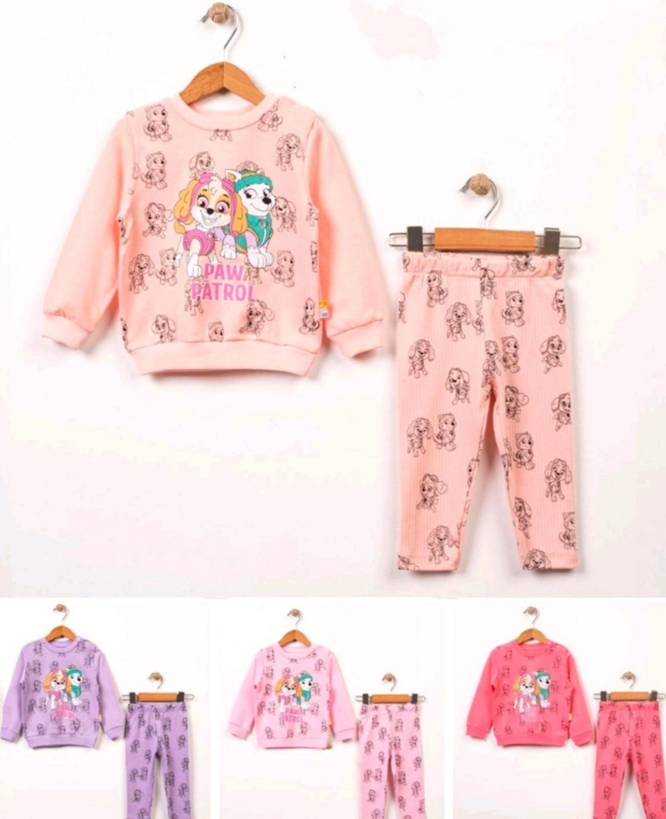 Памучен, мек комплект с любимите Paw Patrol. Наличен в бебешко розово