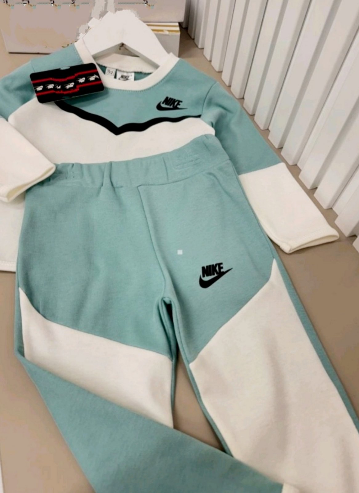 Комплект в цвят мента и бяло унисекс модел от 6 месеца до 2 години