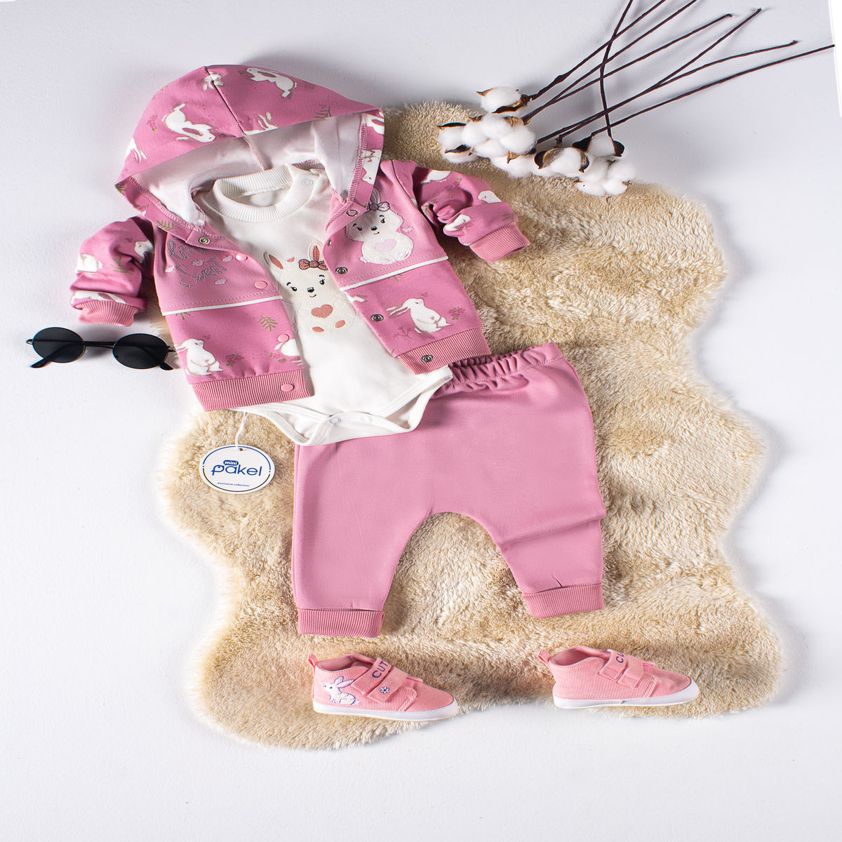 Сладурски комплект от 3 части – горничка с качулка, боди с дълъг ръкав и панталонки
