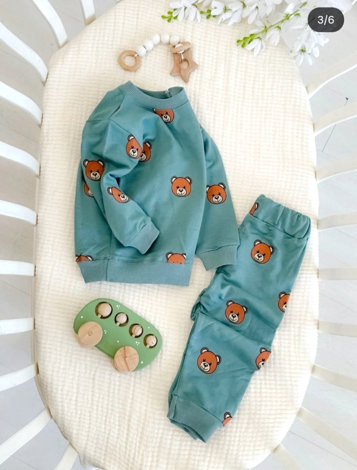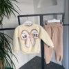 Комплекта се състои от блузка и долница. Подходящ за ежедневни разходки и игри. Мечетата като апликация добавят акцент и стил към комплекта