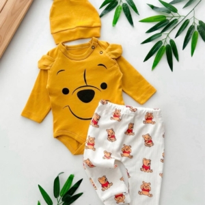 Памучен комплект, който се състои от 3 части – боди, долница и шапка