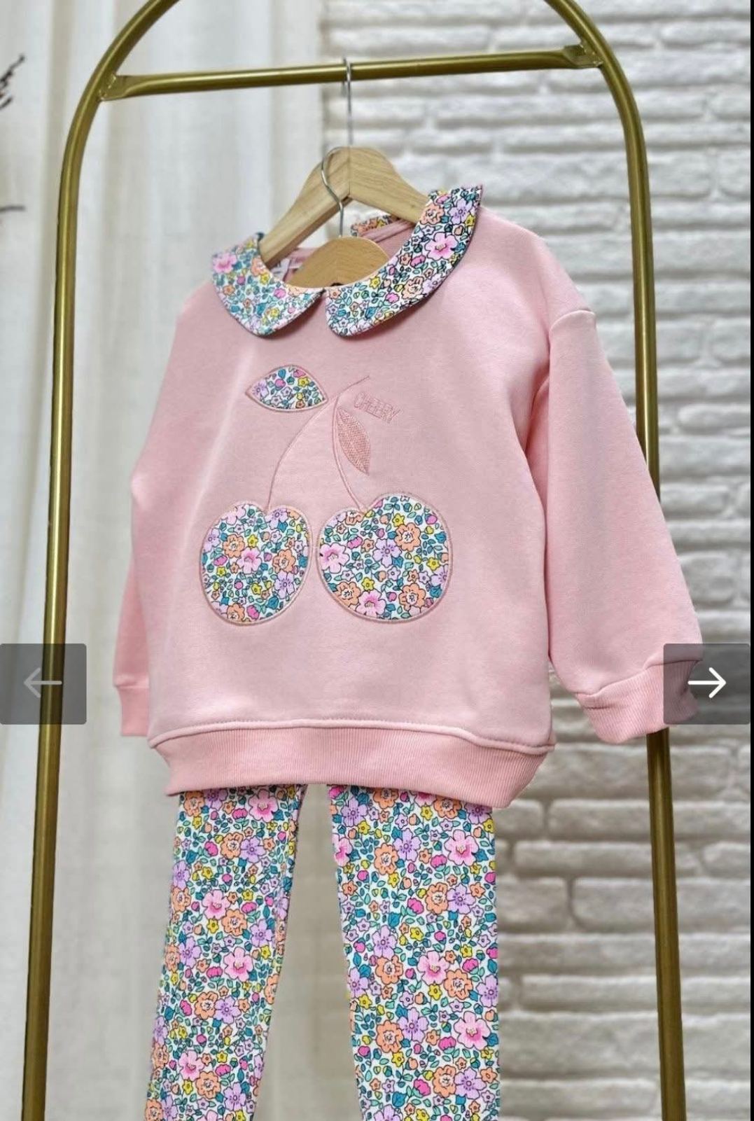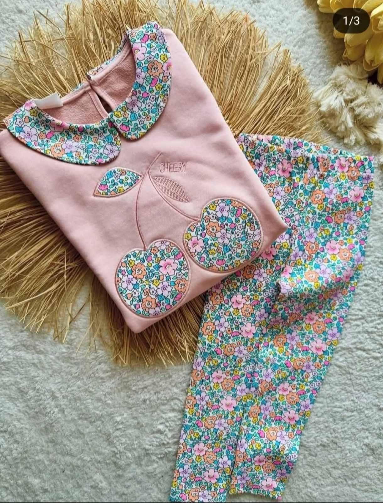 Страхотен комплект  от 2 части с в нежно розово с черешки и яка.