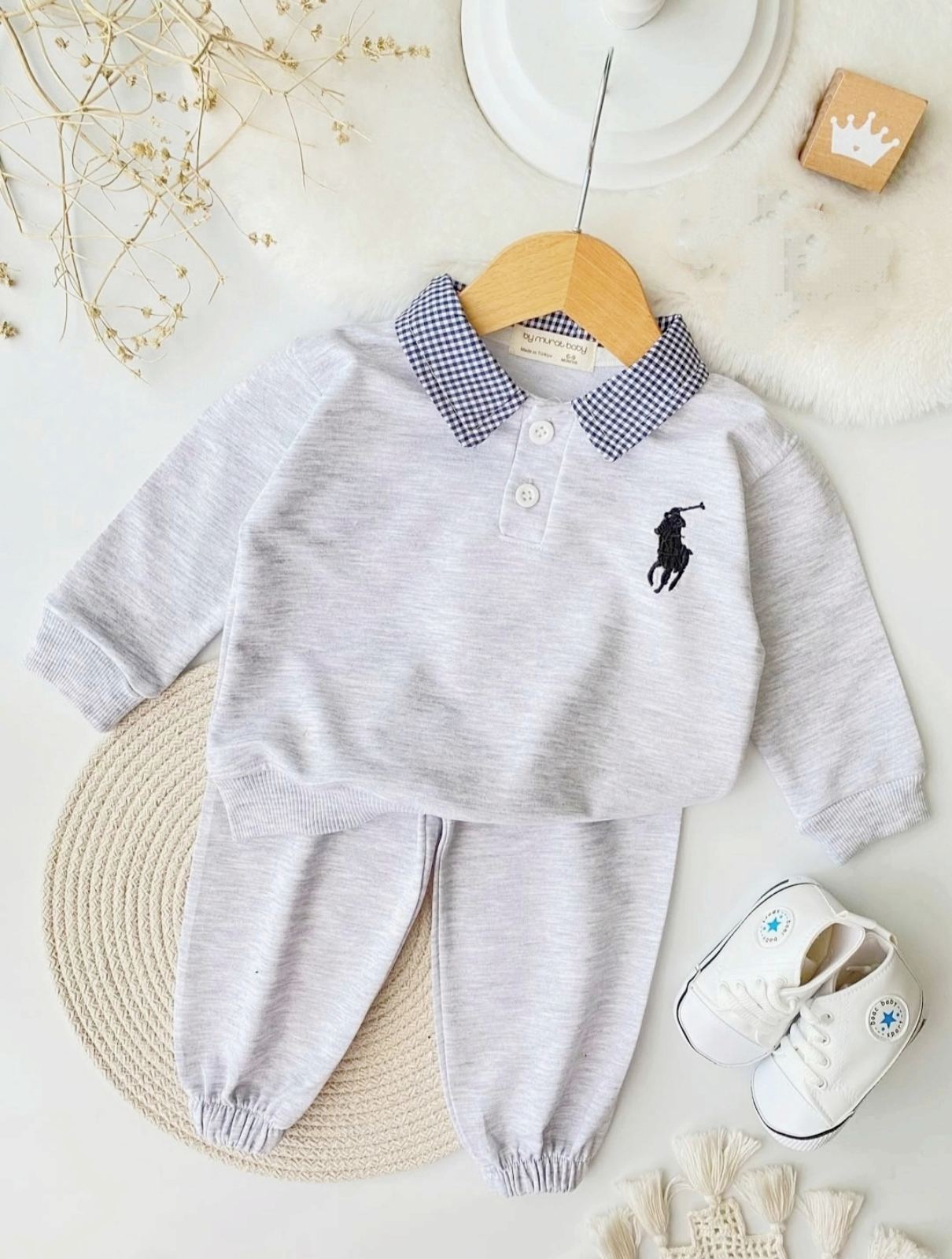 Памучен мек комплект за момче с якичка , удобен за детски игри и разходки