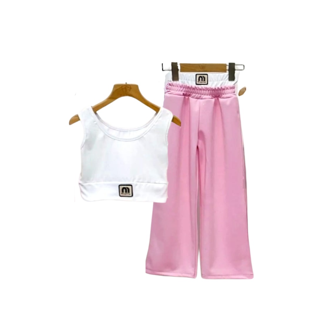 🌸 Цветове: Бял потник + светло розов панталон