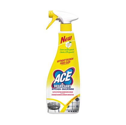Почистващият препарат за кухня ACE обезмаслява и перфектно почиства кухненски повърхности.
