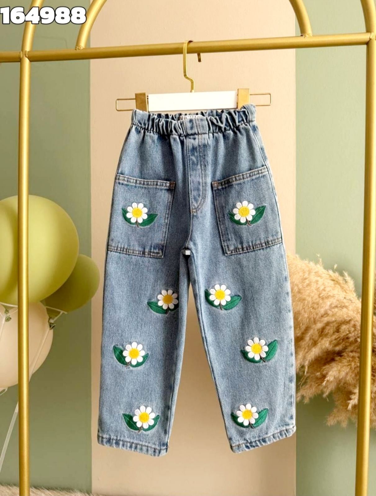 Страхотен избор за детето. Пролетен модел дънки с цветя и с ластик в кръста