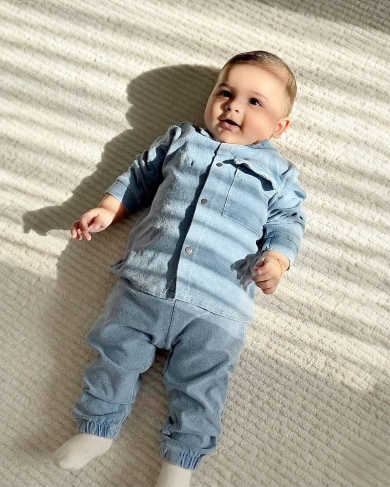 Уникален памучен комплект с ризка и долница имитиращи дънки